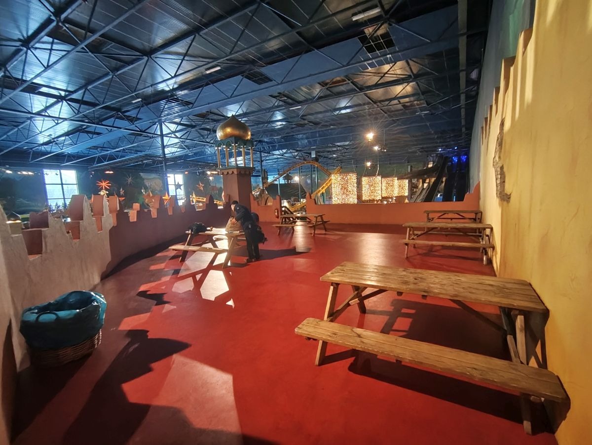 So sieht der Bereich aus. Es gibt keinen Durchgang zum Restaurant MaMouche, dadurch ist der Bereich schön ruhig. Leider auch ein bisschen düster. Meines Erachtens der schönste Picknickplatz ist in der Wunderland-Halle, über dem Eckrestaurant, wo auch die Blitzbahn wieder in die Halle fährt. Sehr schön hell und mit großen Fenstern nach draußen, mit Blick auf die Blitzbahn. Grüße Andreas PS: Wir sind wahrscheinlich am 18.01. dort.