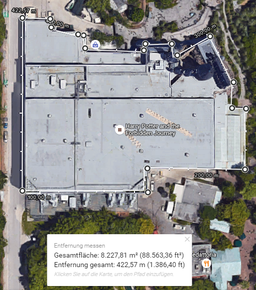 Erstens schrieb er "alla Forbidden" Journey, also könnte es auch nur eine ähnliche kleinere Variante sein und zweitens wäre die Fläche, die im Phantasialand frei werden würde, wenn man das gesamte Areal hinter RfA inklusive Betriebshof nimmt, mit ca. 10.100qm größer als das gesamte Gebäude von Forbidden Journey (ca. 8200qm). Flächen mit Google Maps gemessen: