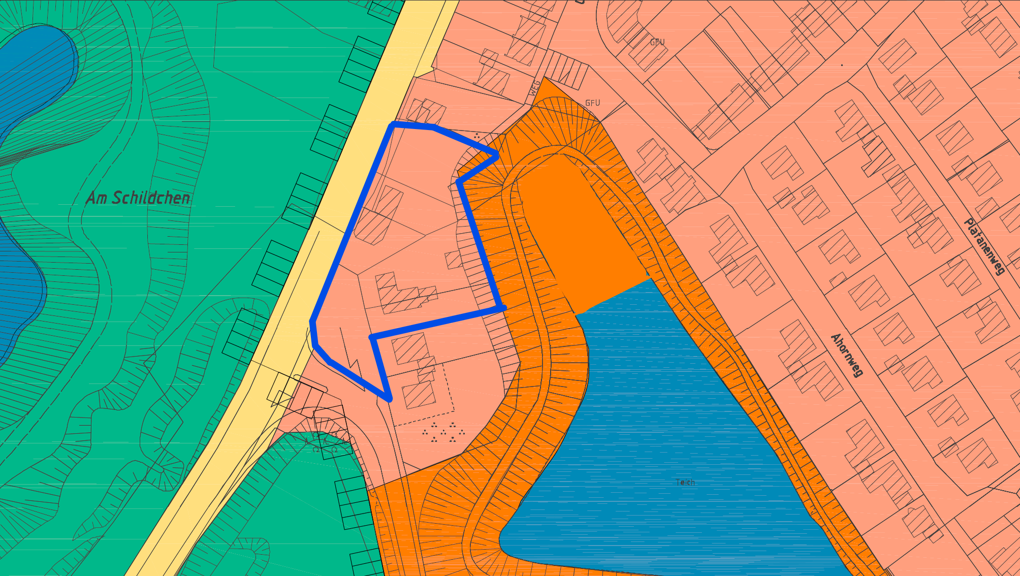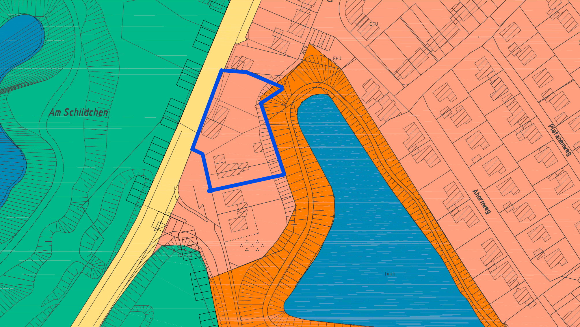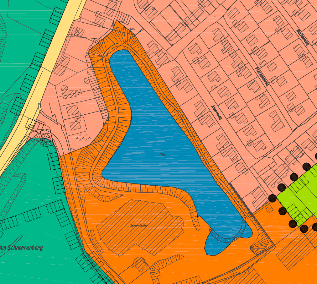 Das stimmt. Aktuell ist die Fläche als Wohnbauflächen festgelegt. Ich weiß nicht, wie Aufwändig es ist, das Abzuändern. Dürfte in diesem Fall eigentlich nicht so schwierig sein. die Fläche ist ja schon von Sonderbauflächen umgeben. Auf dem Plan hat der See auch noch die Ursprüngliche Größe. Ein Großteil des oberen Ausläufers ist heute die Picknickwiese.