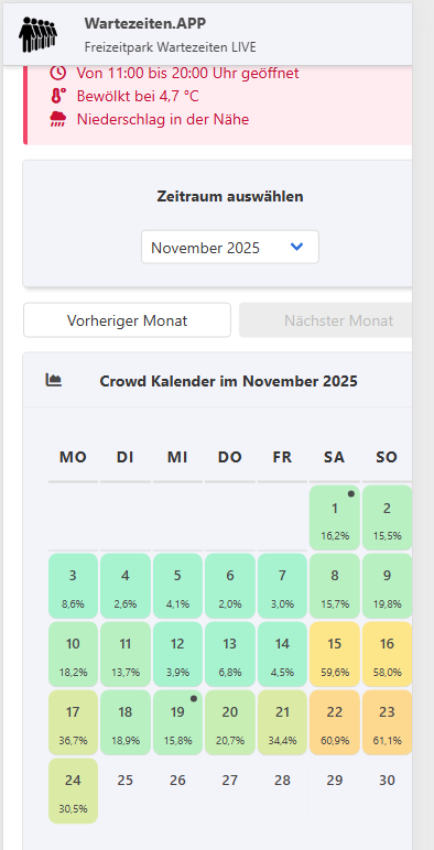 vor 14 Stunden14 h vor 56 Minuten, mschmidke hat gesagt:Ist ja auch nicht. Auf Facebook gibt's quasi täglich Berichte von Menschen, die unter der Woche waren und es angenehm leer fanden.Da sagen die Wartezeiten der letzten Woche aber was anderes. Aber das ist natürlich bei jedem unterschiedlich in der Wahrnehmung. Für mich ist das alles unter der Woche zu viel des guten. Am Wochende sind die Wartezeiten unfassbar gewesen. Aber das sind dann die Besucher die am laufenden Band schreiben: 'Nie wieder!'.