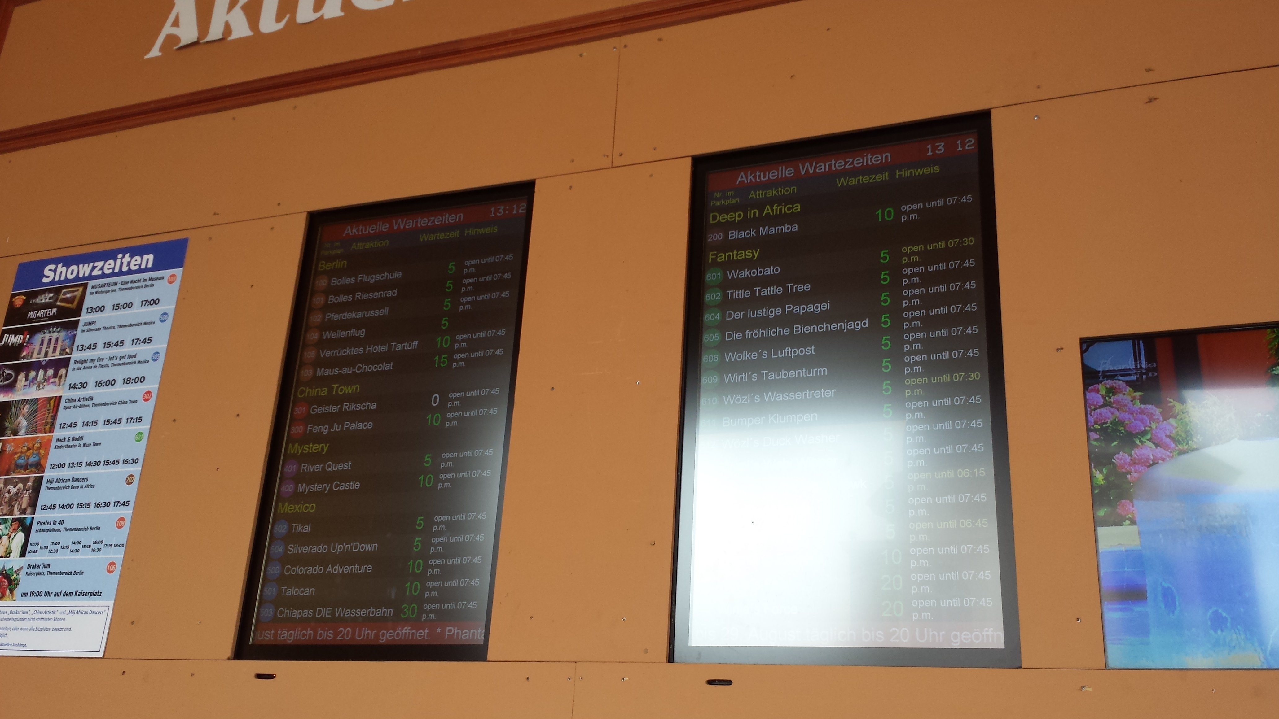 27. Juni 201510 j Hier teilweise die Wartezeiten vom samstag, 27. Juni 2015 oder auch dem ersten Tag der Sommerferien und der Öffnung bis 20Uhr. Der Park war gut gefüllt aber durch die Shows waren die Wartezeiten wirklich annehmbar. Winjas waren anfangs bei 5 Minuten und gingen dann bis 20 Minuten hoch. Chiapas wie immer die längste Wartezeit. Insgesamt sehr erträglich bei wechselhaftem Wetter. Ab 17/18 Uhr wurde es übrigens deutlich leerer im Park und man hat gesehen dass die Leute echt fertig waren. Ich bin es jetzt auch.