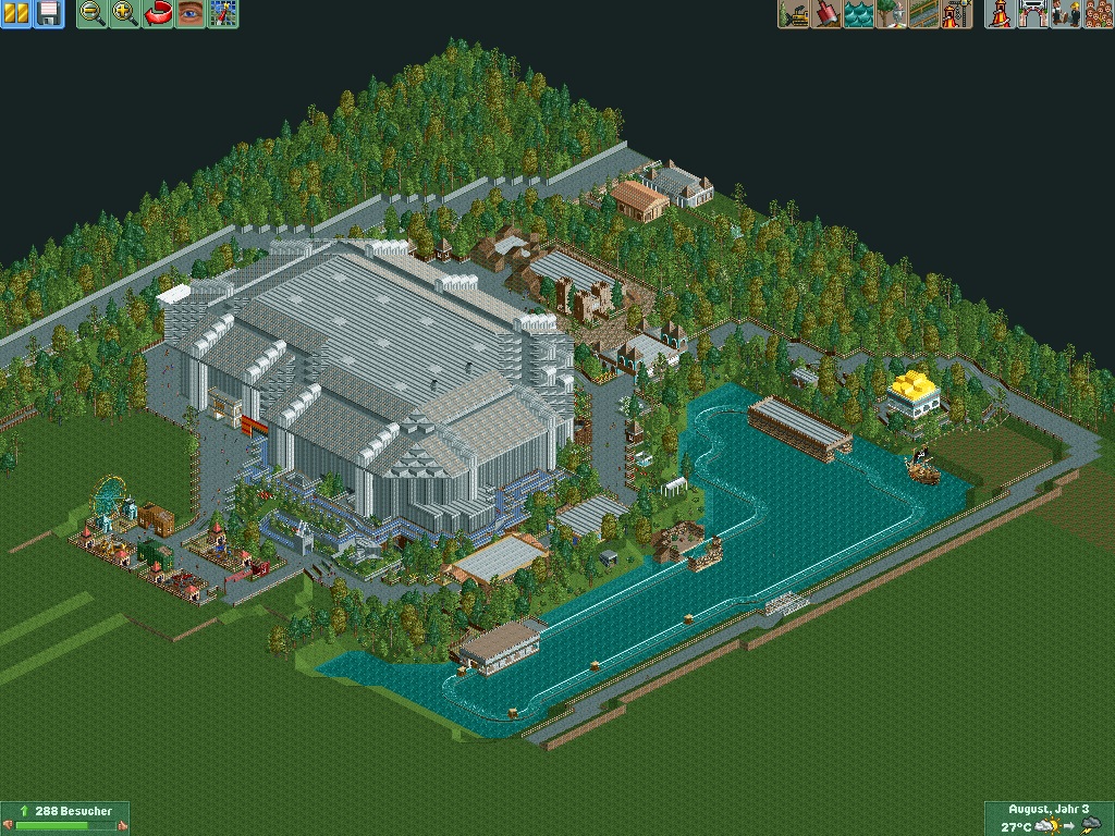 24. Dezember 201410 j Halli Hallo miteinander, Vor einiger Zeit schon gab es von einem Kumpel und mir den ein oder anderen Versuch das Phantasialand in RCT2 zu verwirklichen. Durch den "Abrisswahn" in der Vergangenheit kamen wir aber gar nicht mehr wirklich mit. Da hatte man gerade seinen Nachbau der Gondelbahn fertig und *zack* war sie in Realität schon weg. Deswegen kam mir vor ein paar Tagen die Idee: "Warum legt man sich nicht einfach auf ein Jahr fest ?" Und so habe ich das Jahr "1998" gewählt. Grund hierfür ist schlicht und ergreifend, dass ich eine meiner Lieblinsbahnen, die "Wikinger Bootsfahrt" noch bestehen lassen wollte. Zudem kann man das Jahr 1998 auch als einen gewissen Wendepunkt des Parkkonzepts ansehen mit der Übernahme von Robert Löffelhardt im selbigen Jahr. Ob dieses Projekt wirklich Anlauf finden wird (und mein Kumpel wieder mit einspringt nach so vielen Jahren, da ich gestallterisch leider eine 0 in dem Spiel bin) steht noch in den Sternen. Der derzeitige Stand beruht auf einem älteren Nachbau des Space Centers. Hinzu gekommen ist bisher nur eine grobe Fassung des Sees: Der Park wird vorraussichtlich komplett ohne CSO gebaut. Im gegensatz zu RCT3 bietet das Spiel ausreichend Gestalltungsmöglichkeiten ohne irgendwelche Fremdobjekte. Der Park wird zudem Besucherfreundlich gehalten sein. Daher muss man evtl. hier und da ein paar Abzüge im Realismus hinnehmen. Ich werde euch nattürlich auf dem laufenden halten. Bearbeitet 24. Dezember 201410 j von TOTNHFan (Bearbeitungshistorie anzeigen)