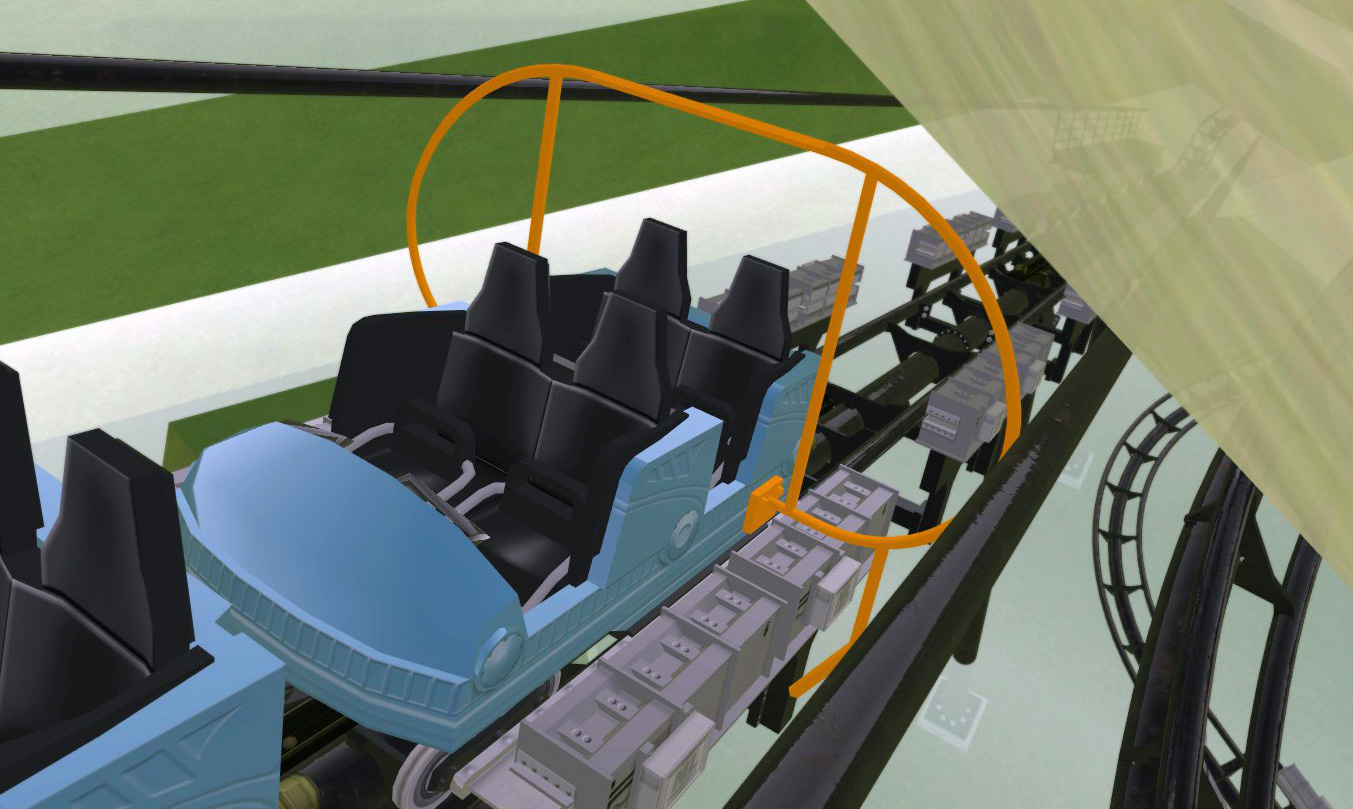 28. Januar 20169 j Autor Der Schienenverlauf des ersten Blockabschnitts ist fertiggestellt. Das Lichtraumprofil, gemessen über die in NL2 mitgelieferte Schablone, wird an vielen Stellen bis auf den letzten Zentimeter ausgereizt. Die Strecke führt oft haarscharf an den Hallenwänden vorbei und kreuzt andere Abschnitte so knapp, dass die Schablone fast schon am Lack kratzt. Zum Nervenkitzel werden die zahllosen Near-Misses und Headchopper jedoch kaum beitragen, da die Strecke später ohnehin im Dunkeln verläuft. Sie sind jedoch notwendig, um die gewünschte Streckenlänge in der möglichst kompakten Halle unterbringen zu können. Während der Konstruktionsphase stelle ich die Gebäudeflächen gläsern dar, so ist das räumliche Einpassen der Streckenverlaufs im Editor leichter. Der erste Launchlift ist bereits technisch eingestellt. Er beschleunigt den Zug mit recht sanften 0,75 g während der 33 m langen LIM-Strecke auf 40 km/h. Auf der Liftkuppe ist der Fahrgast dann kurzzeitig völlig schwerelos, bevor die Kurvenfahrt beginnt. Wie ihr sehen könnt, kommen im Streckenverlauf keine größeren Drops vor. Der Zug arbeitet sich eher von oben nach unten, wobei sich der tiefste Punkt von Blockabschnitt zu Blockabschnitt nach unten verlagert.